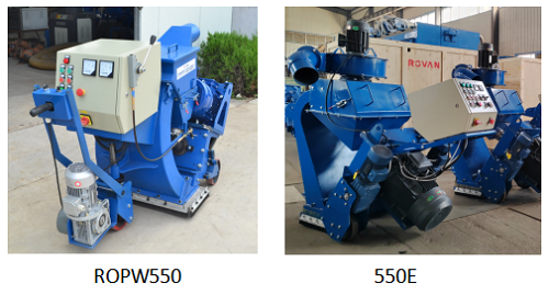 在移動(dòng)式拋丸機(jī)選型上,建議選擇ROPW550、500E、500S。其中,ROPW550的工作寬幅為550mm,適合平面甲板的清理,處理效率為75-100m2/h。而500E由于工作時(shí)離水平表面高度可以控制在20mm,它既可用水平面甲板,也可用于防滑條坡度表面的清理,工作寬幅為500mm,處理效率為50-140m2/h。