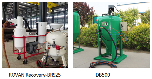在甲板噴砂機(jī)的選型上,建議選擇循環(huán)式噴砂機(jī)ROVAN Recovery-BRS25、無(wú)塵噴砂機(jī)DB500。循環(huán)式噴砂機(jī)ROVAN Recovery-BRS25的優(yōu)點(diǎn)是便于移動(dòng)、無(wú)粉塵外溢、磨料可自動(dòng)回收,清理效率為6-15m2/h。無(wú)塵噴砂機(jī)DB500是濕式噴砂機(jī),噴砂作業(yè)時(shí)無(wú)揚(yáng)塵,可連續(xù)工作60min。如果需要延長(zhǎng)工作時(shí)間,也可以選用容量更大的DB800、DB1500。